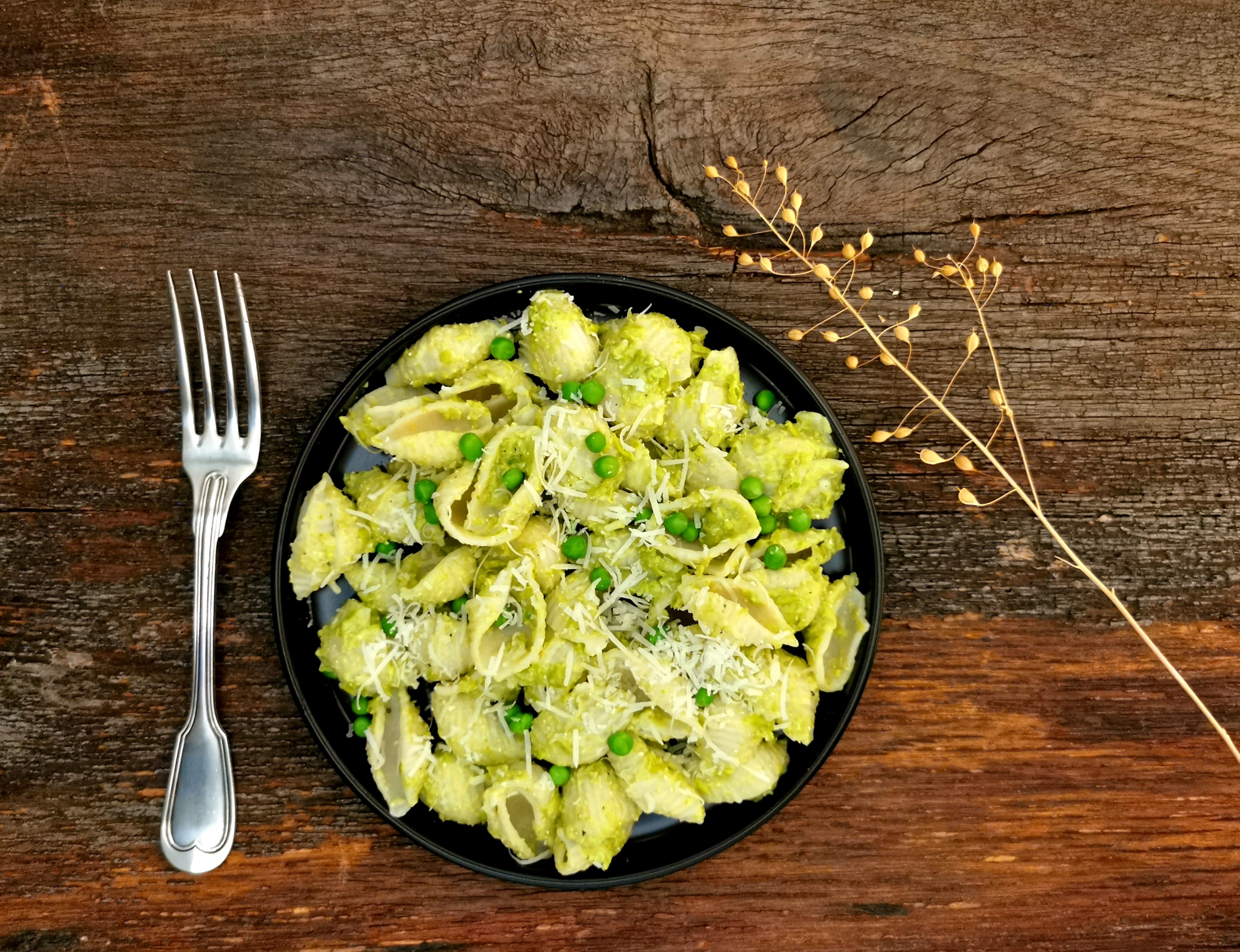 50 Gramm Parmessan unterrühren und etwa 100 ml Leindotteröl hinzugeben. Mit Salt zu Pfeffer abschmecken – fertig!